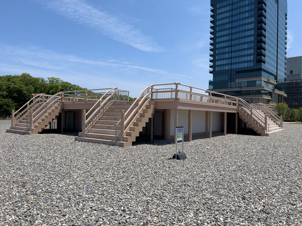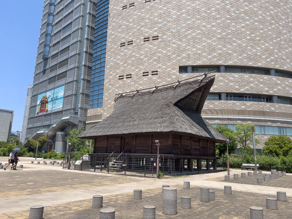 隣接する西側には、難波宮よりももっと古い古墳時代の「法円坂遺跡」の高床式倉庫が復元されています。