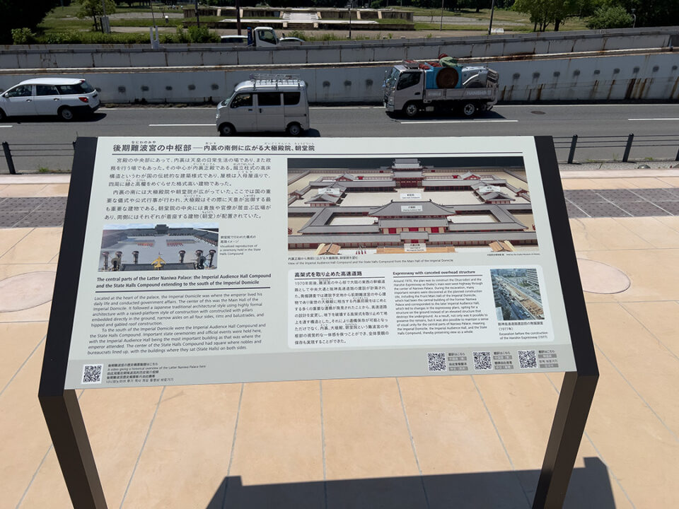 高速道路の向こう側に見えるのは内裏南門と大極殿。