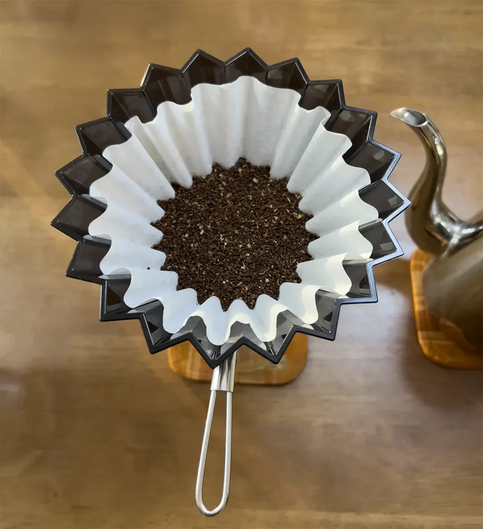 オリガミ ドリッパー air のMを使っていましたが、径が大きいので抽出中にギザギザの角がドリップポットに当たることがあります。当たるのは嫌なので、2杯取り用に一回り小さいSも買ってみました。