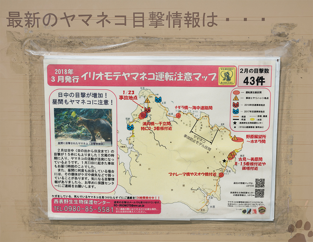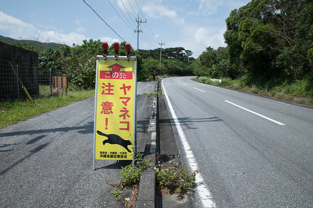 交通事故によって命を落とすイリオモテヤマネコが増えていて、県道215号線にはドライバーに注意を呼びかける看板がたくさんあります。私も制限時速40kmを守って慎重に運転しました。