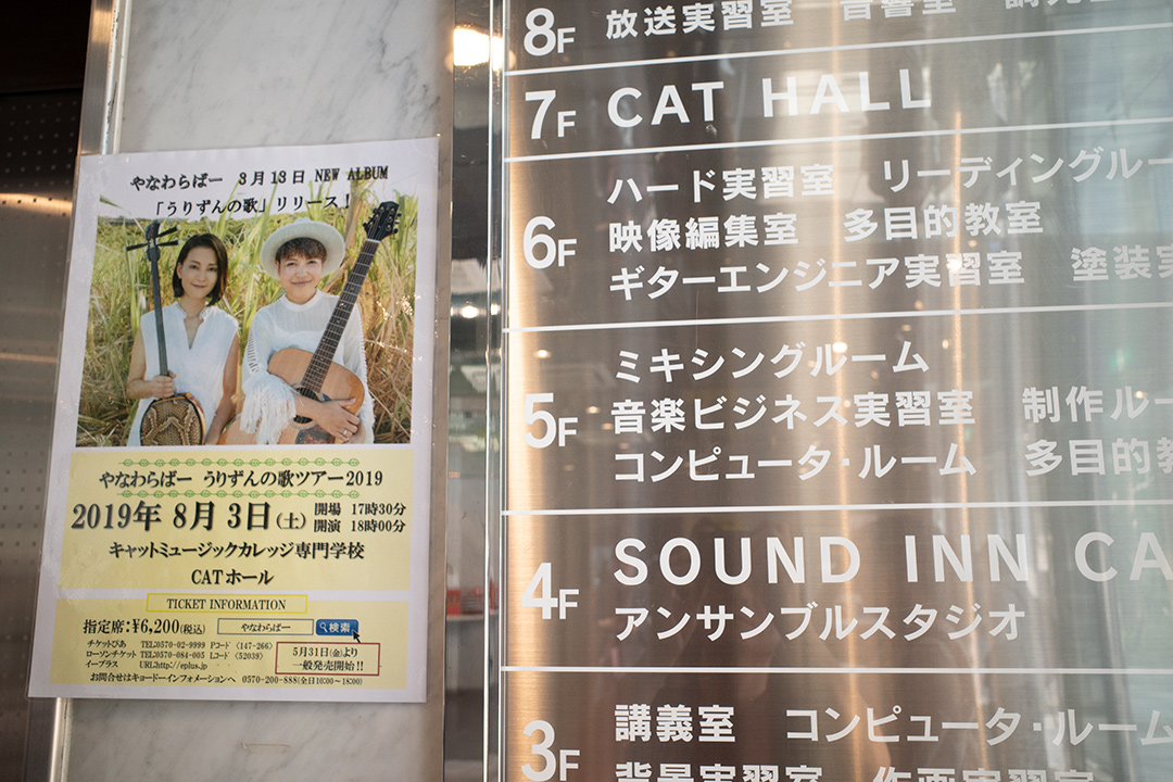 やなわらばーの母校・キャットミュージックカレッジ専門学校のCATホールで行われた「うりずんの歌 ツアー2019」大阪公演に行ってきました。